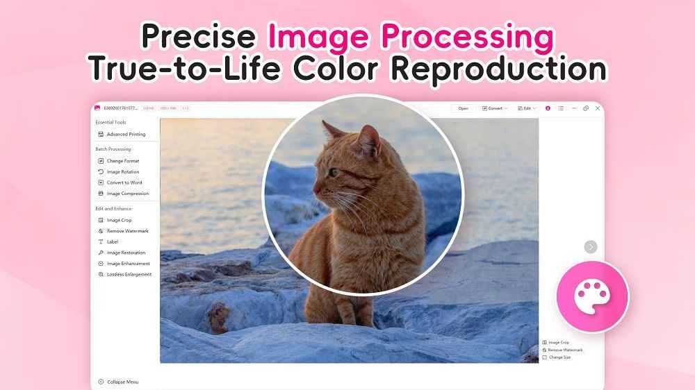 Поддержка пакетной обработки HD-изображений позволяет пользователям получать высококачественные и эффективные отпечатки. Кроме того, доступна пакетная конвертация, сжатие изображений с поддержкой нескольких форматов и одновременное редактирование нескольких фотографий . Инструменты цветокоррекции также позволяют точно обрабатывать изображения и сохранять реалистичные цвета. Однако для редактирования фотографий с использованием расширенных инструментов вам потребуется воспользоваться программой для редактирования фотографий.